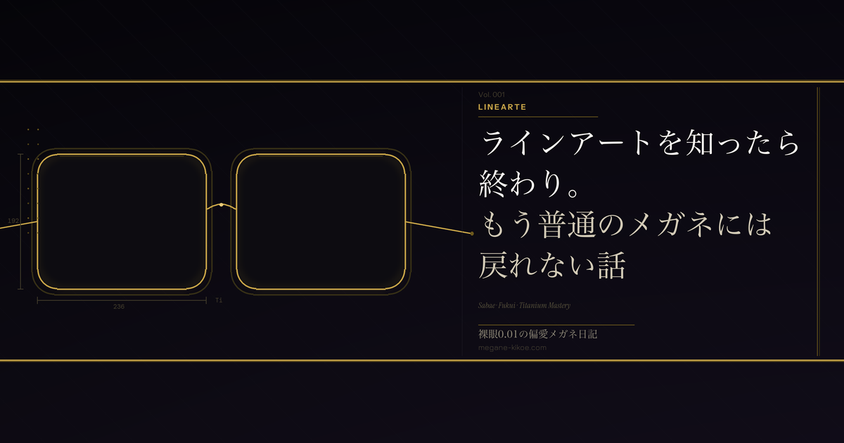 メガネ好きの皆さんにお伝えしたいことがあります。ラインアートは「一度試したら終わり」のブランドです。覚悟して試してください。でも、もし試したなら——ようこそ、沼へ。